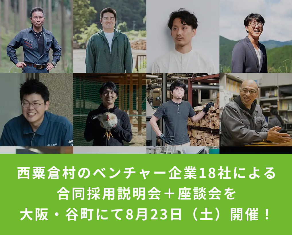 - 西粟倉村のベンチャー企業18社による合同採用説明会+座談会を大阪・谷町にて8月23日(土)開催!