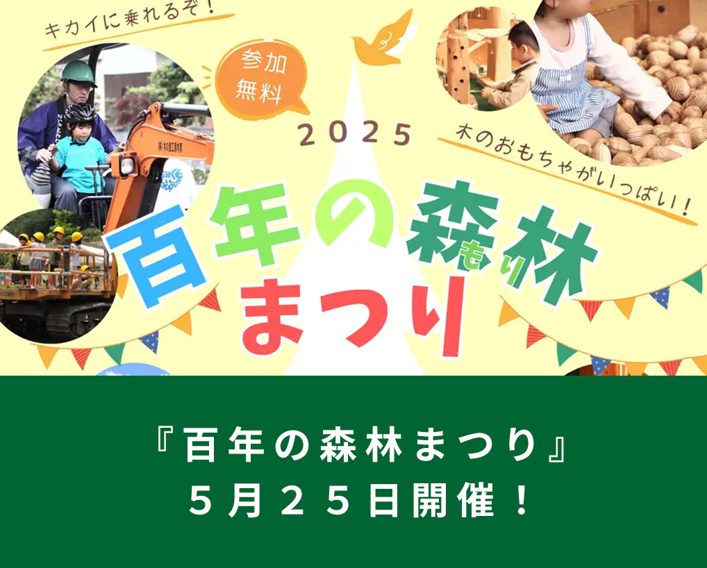- 林業機械が大集合!木製おもちゃで自由に遊べる!「百年の森林まつり」開催!