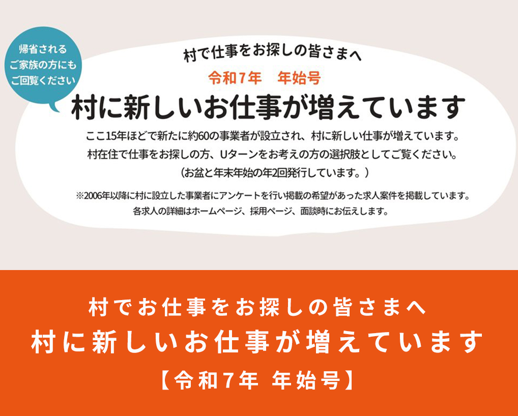 - 【令和7年年始号】村に新しいお仕事が増えています