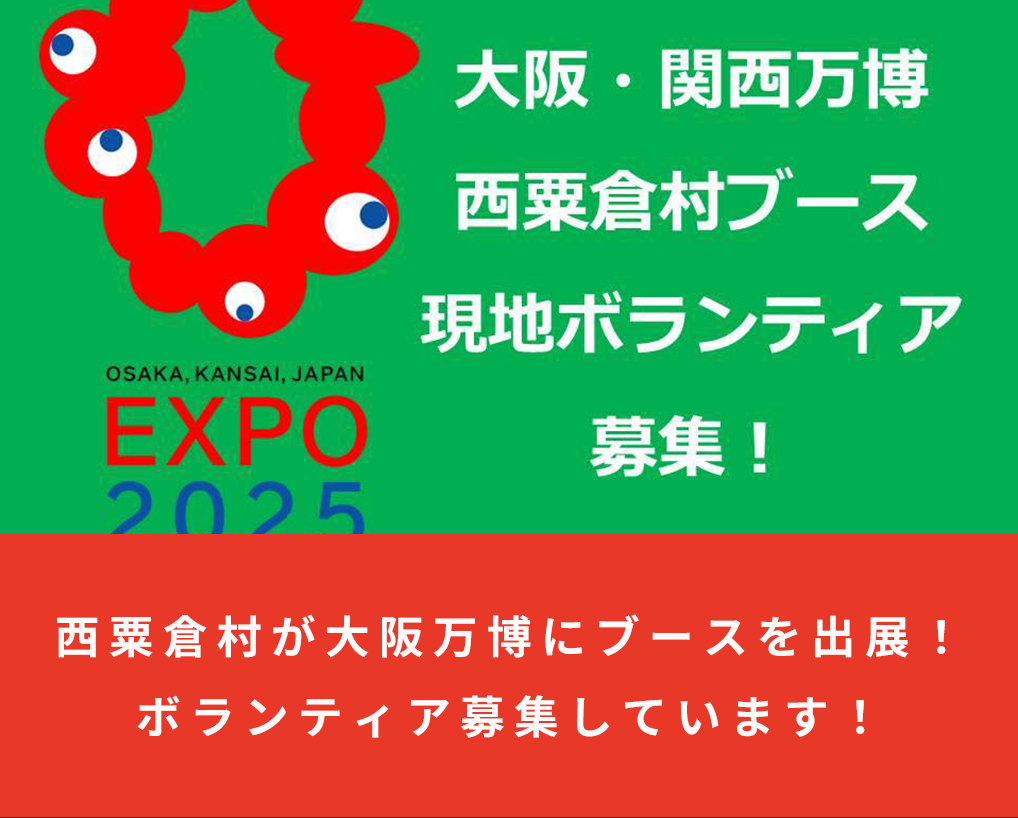 - 西粟倉村が大阪万博にブースを出展!ボランティア募集しています!