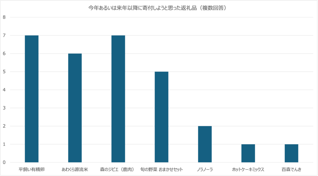Q1 今回オススメした返礼品の中で、今年あるいは来年以降寄付しようと思ったものを教えてください。(複数回答可)