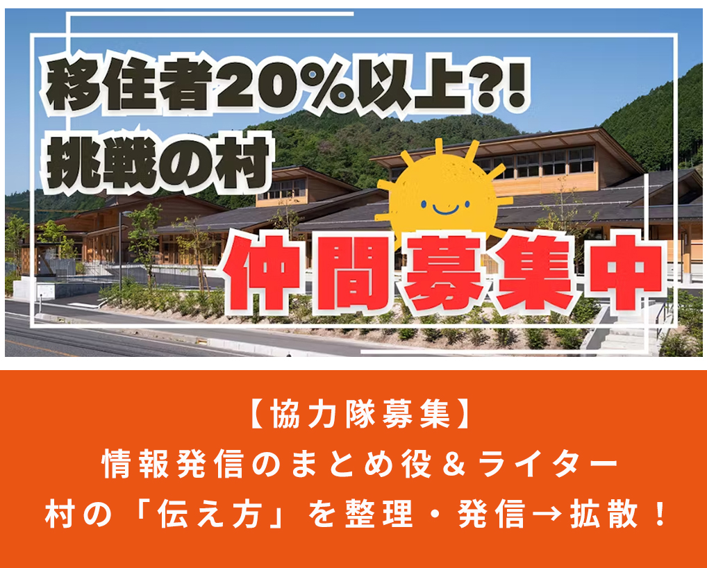 「村の魅力を、もっと見やすく。そして、みんなが発信し続けられる形に」 西粟倉村役場では、各課がSNSやHPなどで日々情報を発信していますが、伝えたい人に伝わる発信ができていません。そこで、まずはあなた自身が村の情報を整理して発信しつつ、ゆくゆくは役場職員だけでも無理なく運用できる「仕組み」を一緒に作ってくれる仲間を募集します。ふるさと納税の魅力をじっくり伝える「Noteライター」としての役割も。あなたの「好き」と「整理する力」で、村のファンをもっと増やしていきましょう!