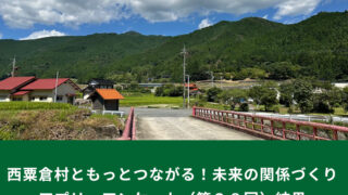 みなさま、第28回アンケートへのご回答ありがとうございました!今回は、アプリ村民の方が他のアプリ村民の皆さまに聞いてみたいこと!として、「西粟倉村ともっとつながる!未来の関係づくり」と題し、西粟倉村へ...